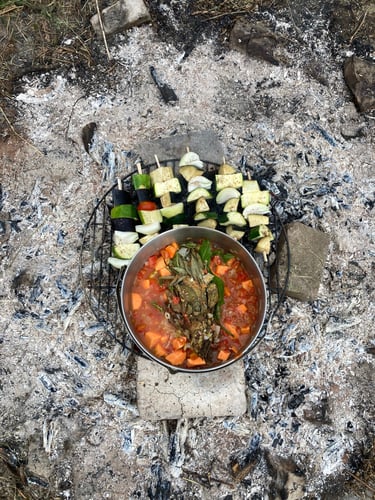 On partage des repas simples, bio et locaux, autour du feu, dans une ambiance conviviale et authentique.